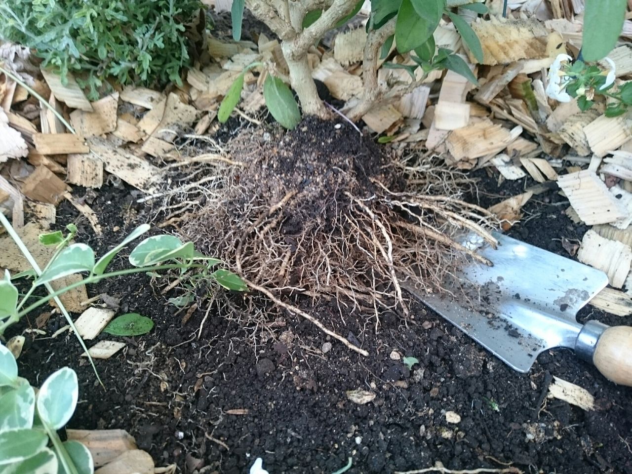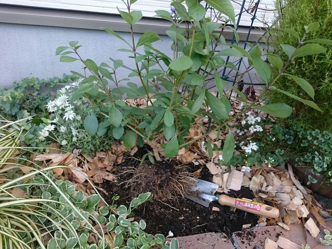 花壇に植えてしまった苗を掘り出して鉢に植え替えます