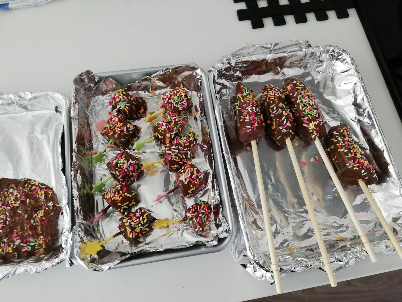 ・チョコが固まる前にスプレーチョコをまぶす