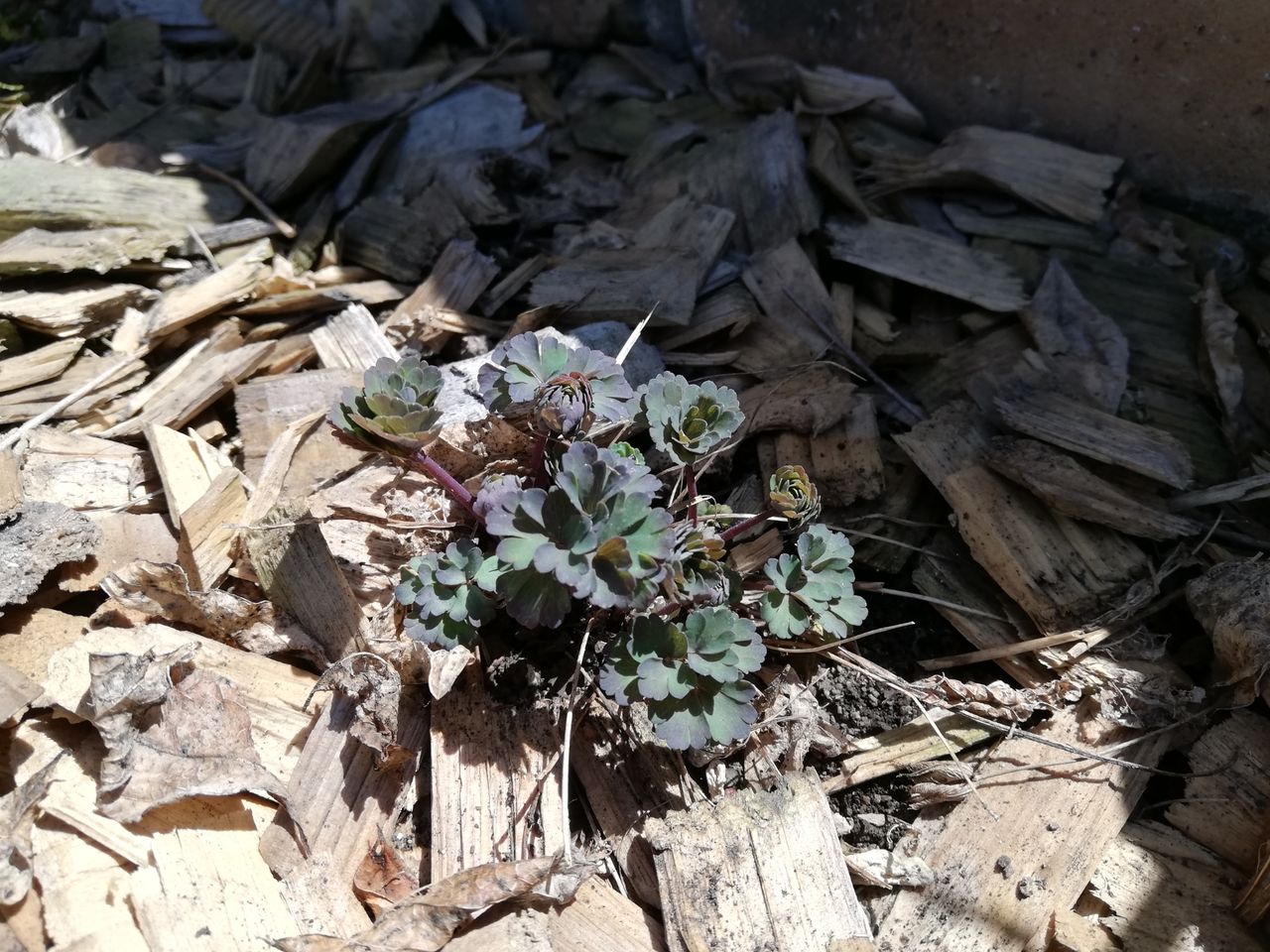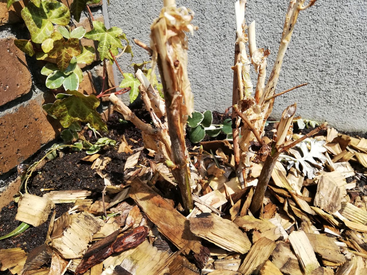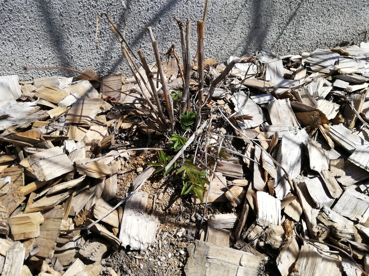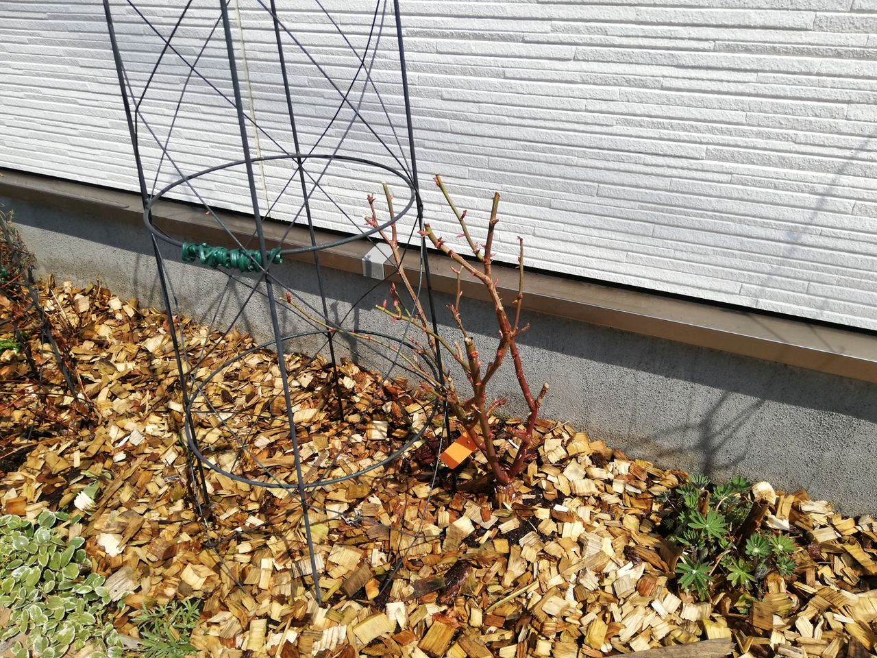 こちらは新枝咲きということで、地際まで切っちゃって冬越し。この写真では全部が茶色でわかりにくいのですが、なんかちょこちょこと出てきています。