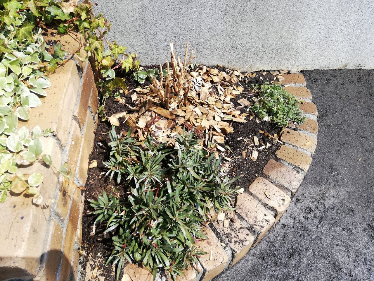 色の寂しい花壇。でもよく見ると…