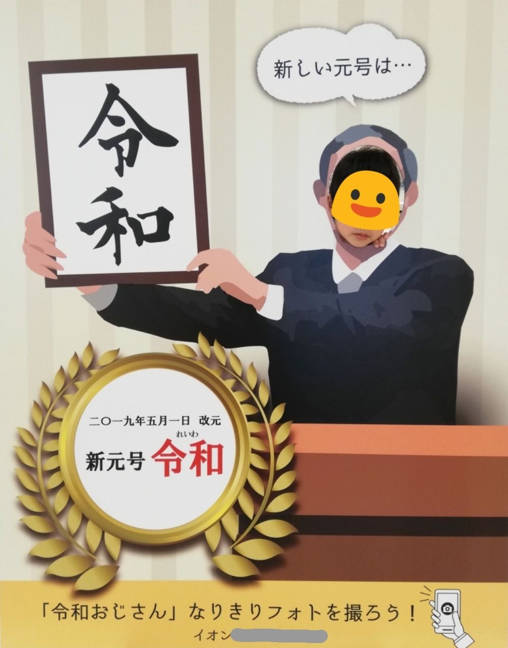 そう。新元号になり、やいのやいの言っていた頃です。息子も顔ハメましたよ。