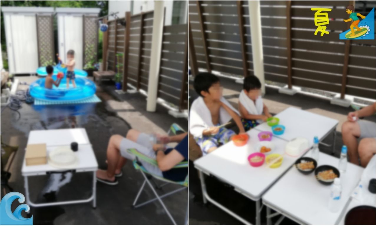 ミニプール出して、外でご飯食べたり↓