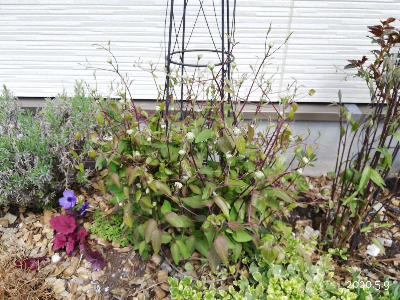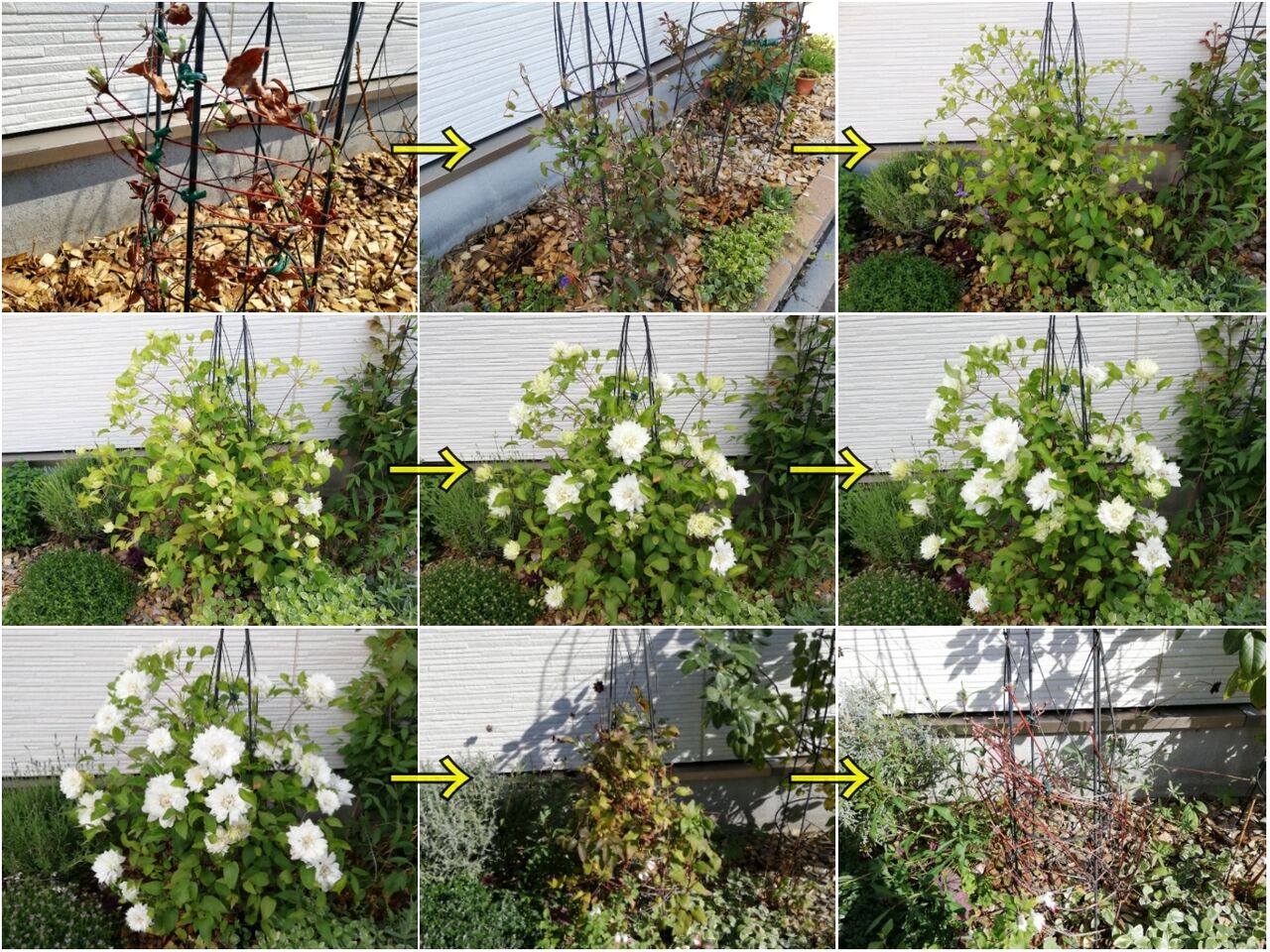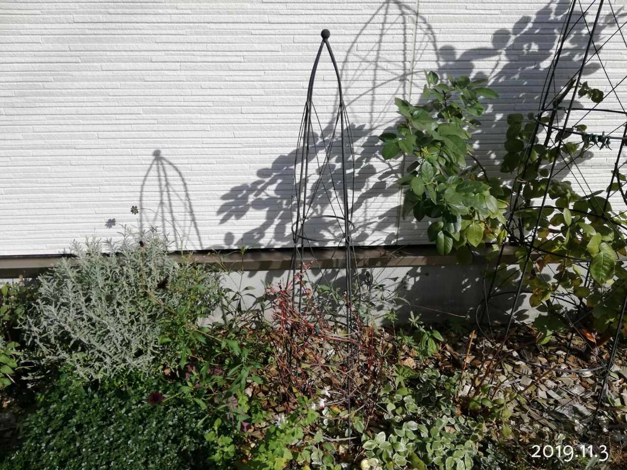 去年はしっかり葉も取り去り、オベリスクにつるを巻きなおして冬越し。