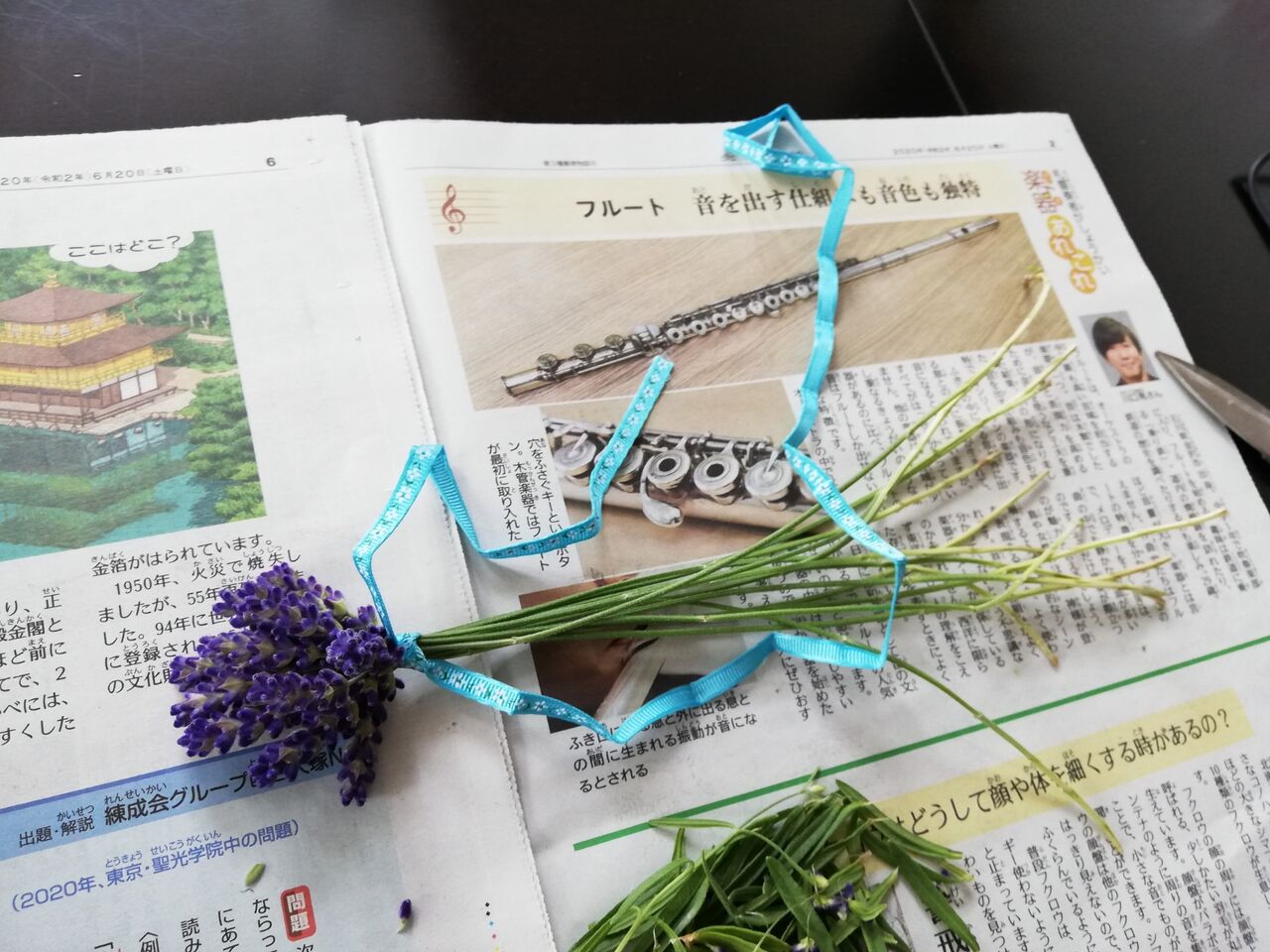 ラベンダーとリボンさえあれば作れるらしいけど我が家のラベンダーはちょっと短め。