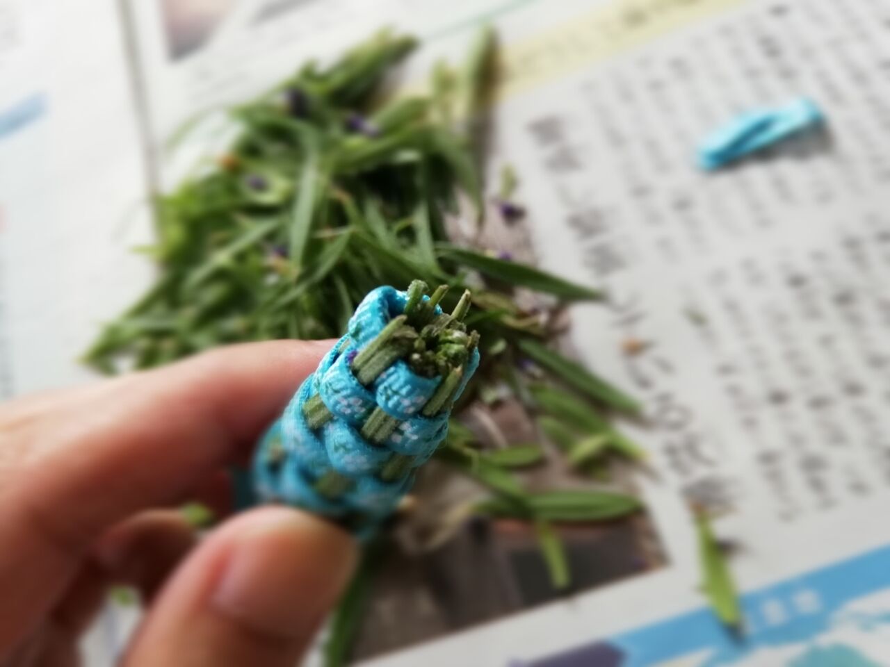 ラベンダースティック (バンドルズともいう)の材料は、ラベンダーとリボン。