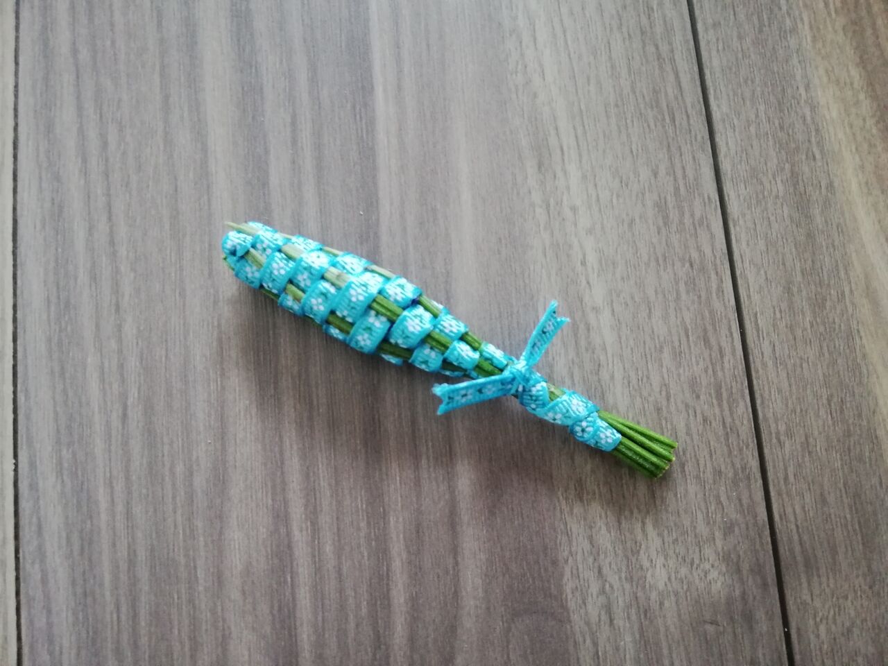 中途半端な固結び&茎を切り揃えて完成。