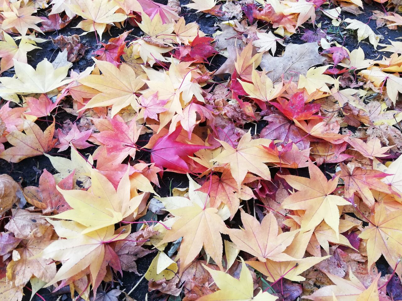 雨風で落ちた葉で、地面も色鮮やか。