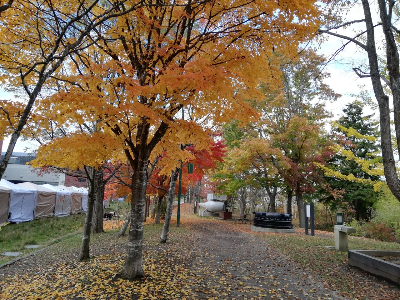 本棚に囲まれた後は、紅葉する木々に囲まれるという…なんとも素敵な休日。