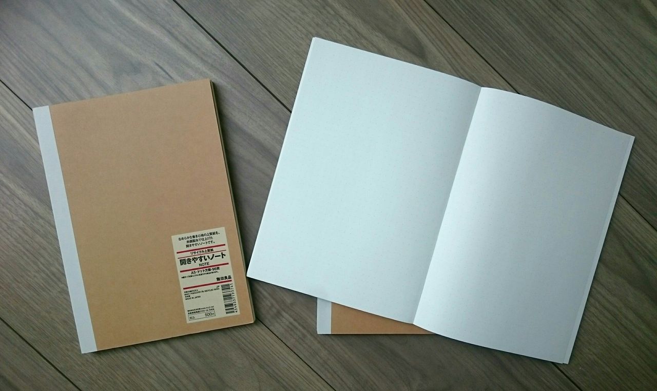マンスリー手帳の使い方は過去記事の時から少し変えていますが、絵日記用のノートはこの無印ノートがいい感じです
