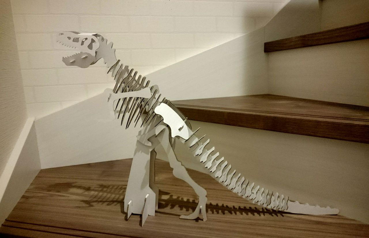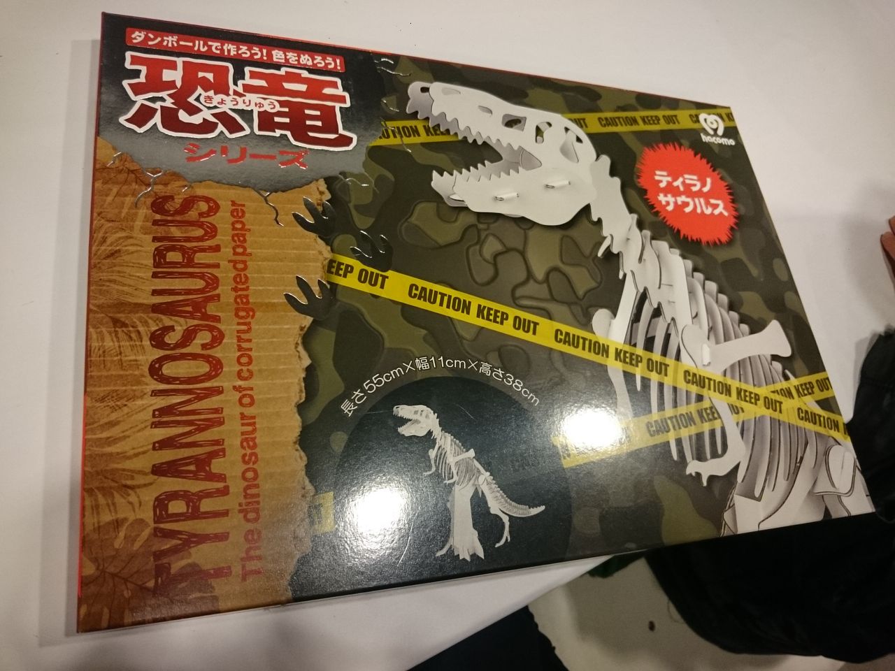 段ボール工作キットを使用して、ティラノサウルスを作成するというもの。