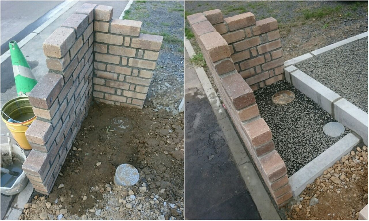 冬は雪が積もるので、高くしないと歩道と区別がつかなくなって踏まれるかな~とか、奥行きが無い分高さがある方が見栄えがいいかな~と。