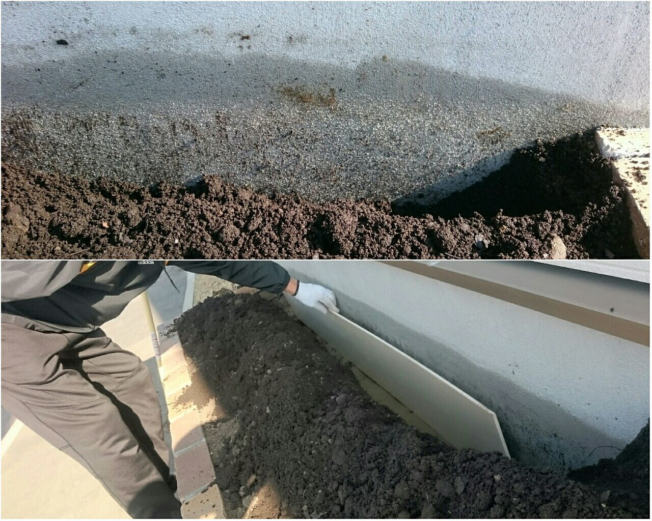効果があるのかないのか、これまたわかりませんが、夫にお願いして、土と基礎との間に薄い断熱材を挟み、土が直接基礎に接しないようにしてみました。