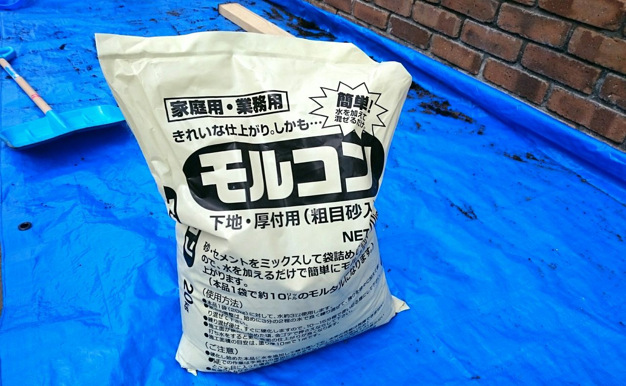 大体の位置決めをしたらモルタルの準備