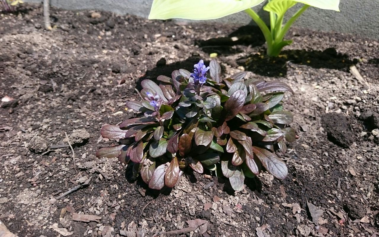 アジュガ(アユガ)は、シソ科。常緑の多年草。耐寒性が強く、日陰でも育つ。