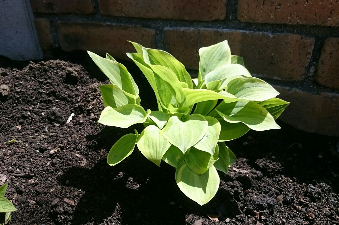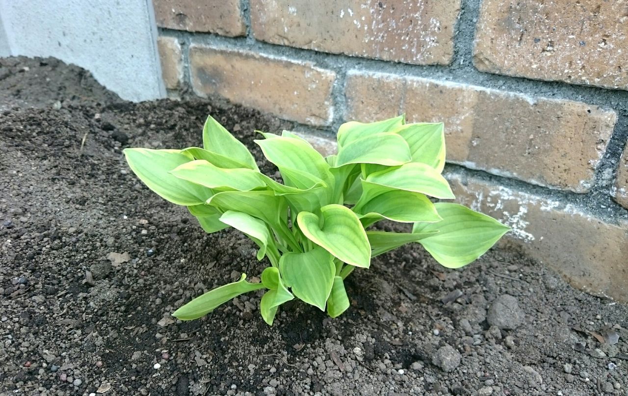 ギボウシ(ホスタ)は、葉が美しい多年草。前回も1つ植えましたが、今回も1つ違う種類のものを植えました。