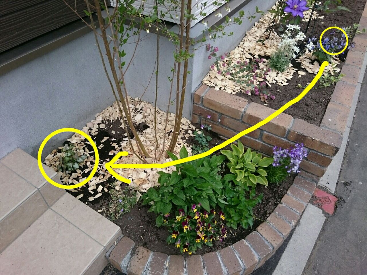 と思い、ウッドチップで株元をマルチング。